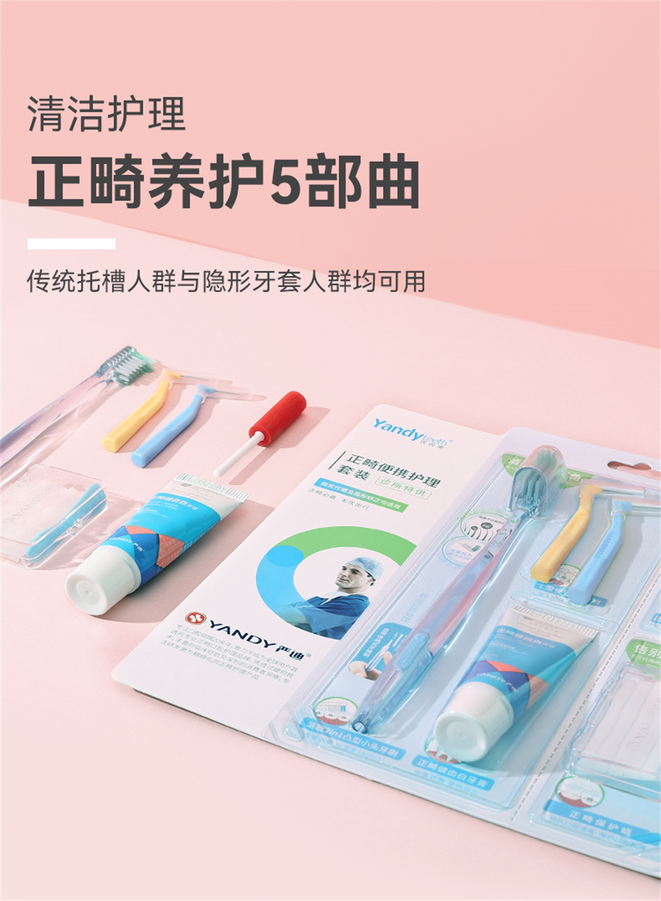严迪/YANDY 正畸便携护理套装(诊所特供)内含:L型牙缝刷2支,多效护理牙膏20g,正畸专用牙刷1支,咬胶1个,正畸保护蜡1个