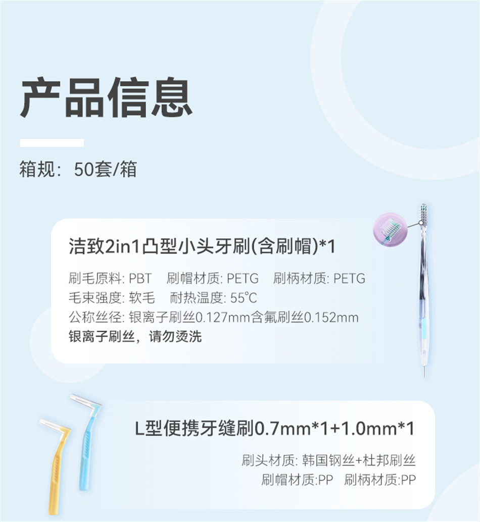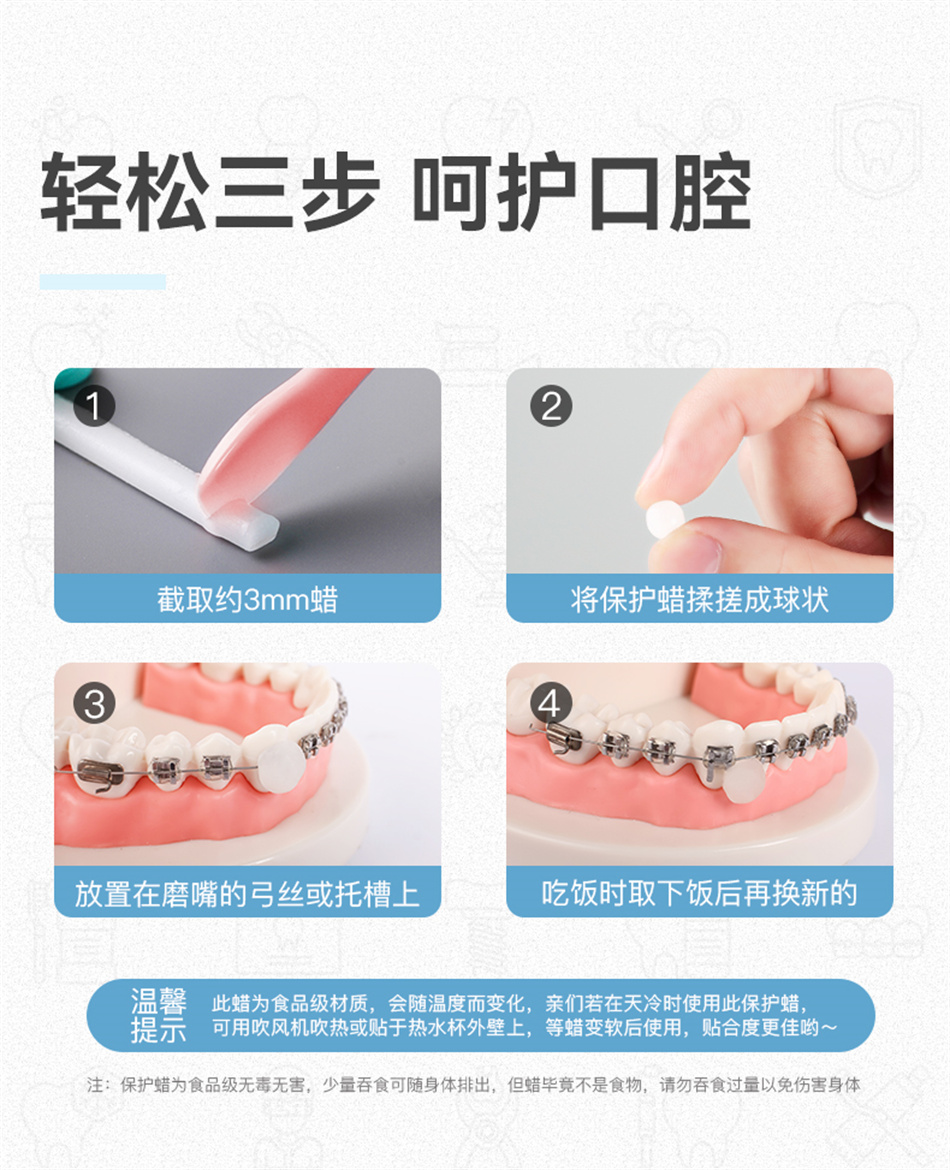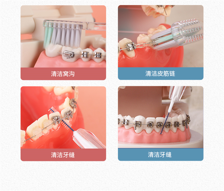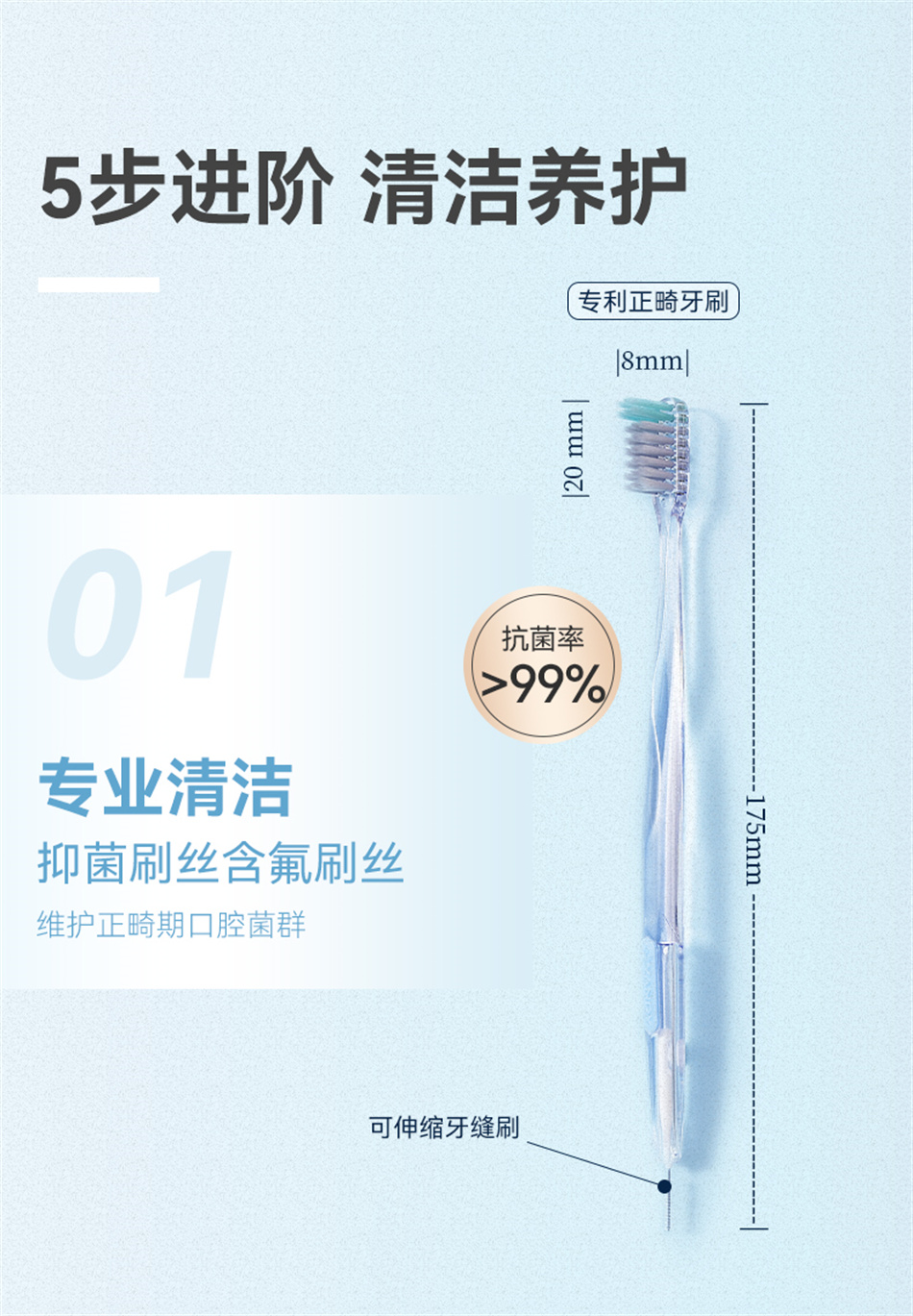正畸便携护理套装(诊所特供)内含:L型牙缝刷2支,多效护理牙膏20g,正畸专用牙刷1支,咬胶1个,正畸保护蜡1个